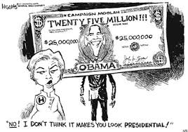 This is a political cartoon of Obama. If you take a look a the picture you can see that Obama has a huge dollar bill on his face and it has twenty five million righting on it. This represents the the money that Obama paid for health insurance. On the bottom there are words that say, NO I don't think it makes you look presidential! This means that she disagrees with the judgment that Obama made with the health plan and this is tyring to prove a point that Obama's plane wasn't the best thing for this country.